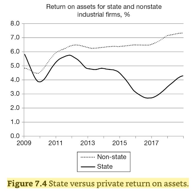 China’s economy is still dominated by government-run enterprises. As Kroeber writes: